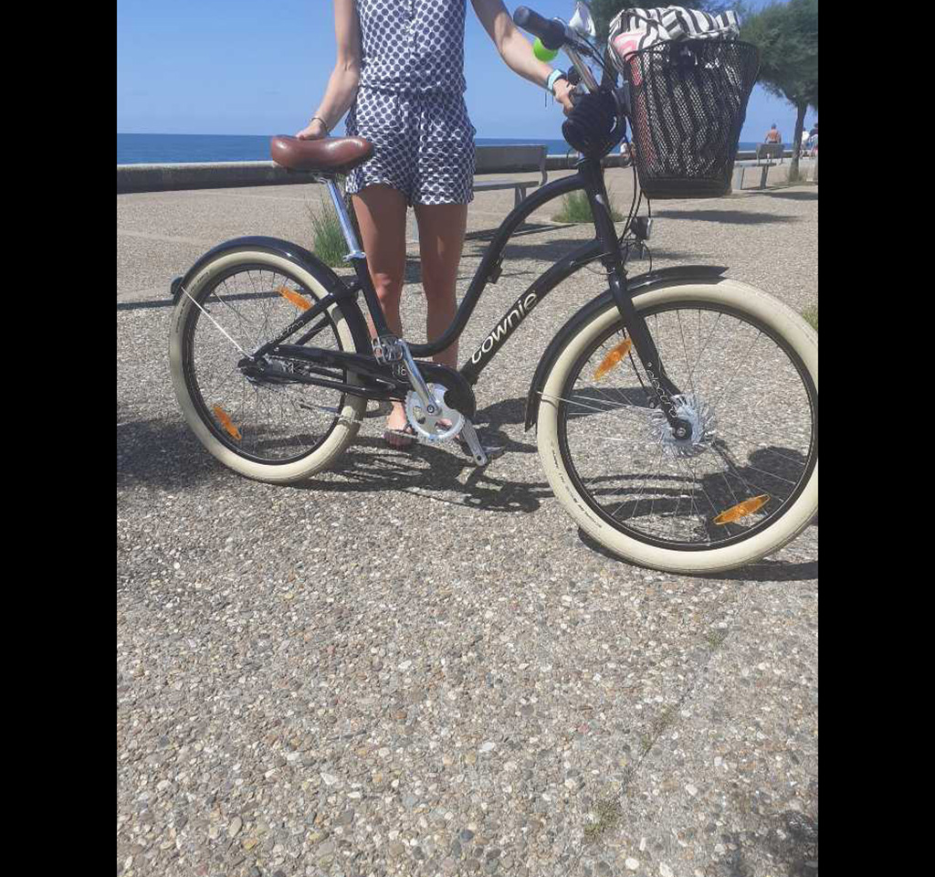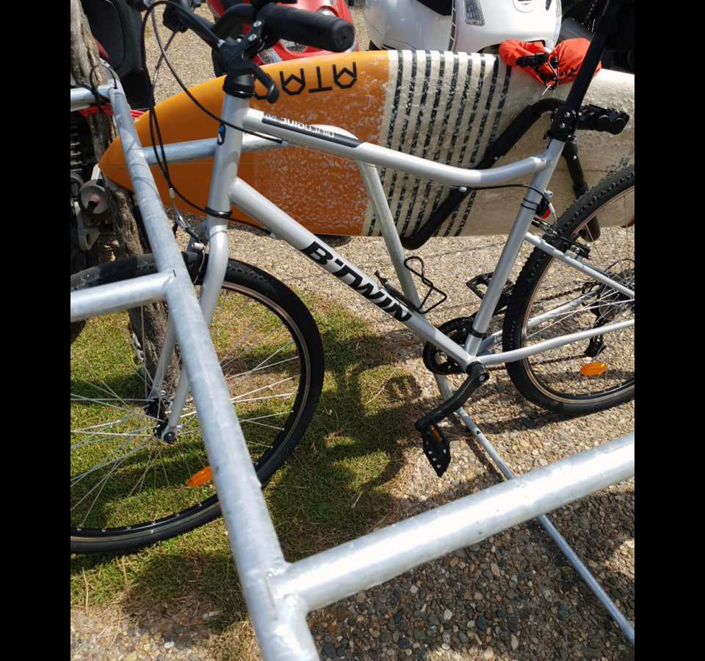 Stagione Souvenir del check-in e videointerviste – Anglet, Paesi Baschi – Francia dal 2019 Foto del check-in del parcheggio biciclette in spiaggia con surf e asciugamani!